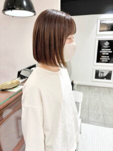 こちらは内巻きボブスタイルで柔らかさも出るようカットしています!